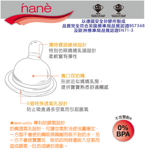 ★防脹氣專利設計anti-colic,形狀近似媽媽乳房提供寶寶舒適和熟悉